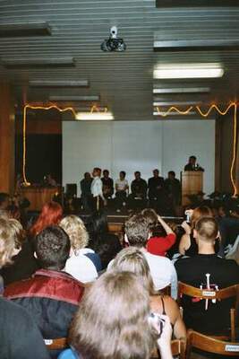 Už by to chtělo také navštívit nějakou přednášku. Napravuji to zhlédnutím přednášky Vulkánci všeobecně. Martin z CZK a Vašek Pravda pak vyhlašují výsledky literární soutěže z prostředí ST Můstek je váš. Následuje trocha ST fanfilmů a pak soutěž Cesta po planetách tří světů – ST, SW a SG, kterou připravila Hana'an. Je to už třetí soutěž, kterou Hana'an pro fanoušky těchto tří fenoménů připravila (předloni to byly Udělátory na Pragoconu a loni Móda na FF). V půl osmé večer začalo s půlhodinovým zpožděním oficiální zahájení Gateconu, kde se příznivci Hvězdné brány dozvěděli, na co se mohou v průběhu Gateconu těšit a byl jim představen tým lidí, kteří Gatecon připravili. Myslím, že zahájení se velmi povedlo, a smekám před organizátory. Z celého Gateconu jsem vlastně viděla jenom to zahájení a byla jsem jím nadšena. Nesmím také zapomenout pochválit výzdobu kina. Brána i obrázky byly skvělé, dokonce se objevil i dr. Zelenka v téměř životní velikosti, i když jenom nakreslený. Alespoň malá útěcha za to, že David Nykl alias dr. Radek Zelenka nemohl bohužel do Chotěboře přijet. Večer vyvrcholil soutěží o nejlepší kostým, volbou Miss Avalconu a tombolou. V kostýmech vyhrála Padmé, o druhé místo se dělil E-Wan s Xyll (Jana) a čtvrtý skončil Samuel (Martin), takže CZK nepřišlo zkrátka. Měli jsme možnost zhlédnout i "výsledky práce" Vlada Taupeše, režiséra, herce a odborníka na zvláštní filmové efekty a filmové masky. Zombík a Gandalf byli naprosto úžasní. Rovněž Silver, coby raněný voják, nešel přehlédnout. Po volbě miss se na chvíli dostala ke slovu kapela v čele s Rybininem. Takticky jsme opustili sál a vrátili se až na tombolu. Zadařilo se, vyhrála jsem tašku na notebook. :-) Večer se opravdu vydařil. Jediné, co se trochu spiklo proti návštěvníkům, bylo počasí. Měl to být den, kdy mělo být venku tržiště a probíhat šermířské souboje. Už ráno začalo pršet a lilo téměř nepřetržitě celý den. Zákon schválnosti zafungoval neomylně...